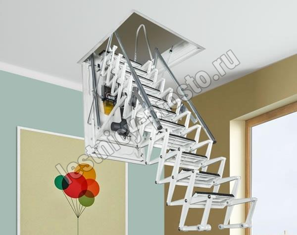 Эта лестница удобна и надежна, а так же безопасна в использовании. Она представляет собой механическую автоматизированную конструкцию, которая выполнена из современных прочных материалов и представлена в широкой линейке размеров.