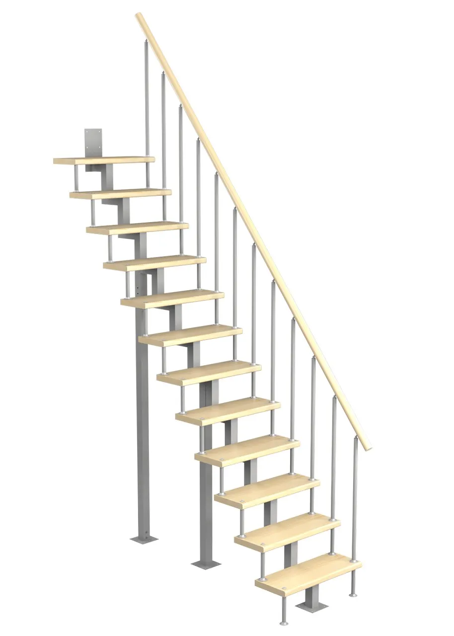 Компактная лестница, легко поддается доработке по высоте на объекте. Удобный поручень по второму маршу обеспечивает безопасность и законченный эстетический вид. Монтаж осуществляется силами двух человек на объекте по указаниям, приведенным в паспорте на лестницу.