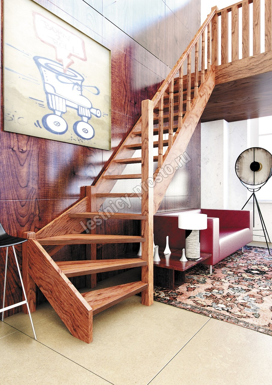 Деревянная межэтажная лестница ЛЕС-07 3085-3290 проем 2930-830, Лиственница