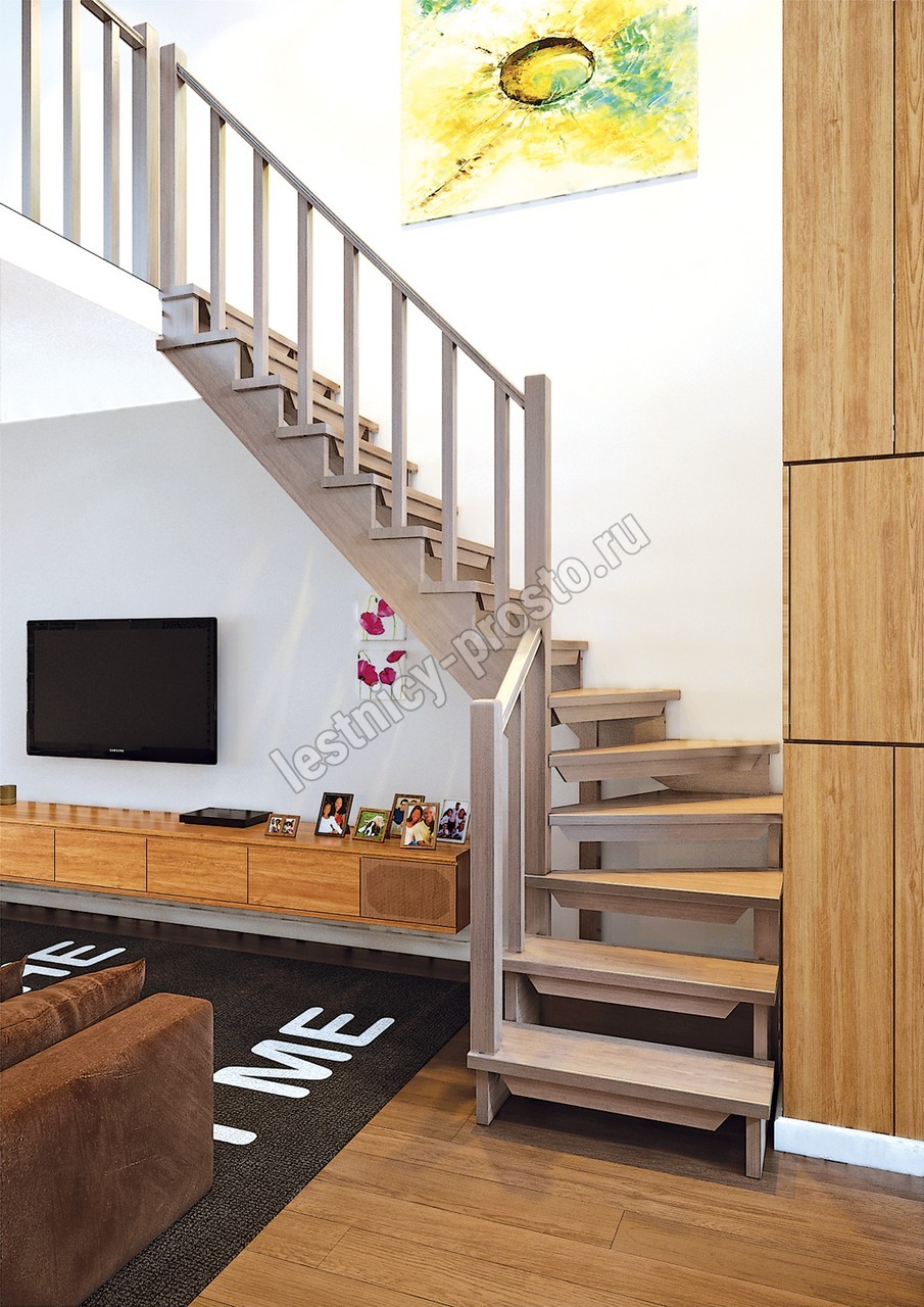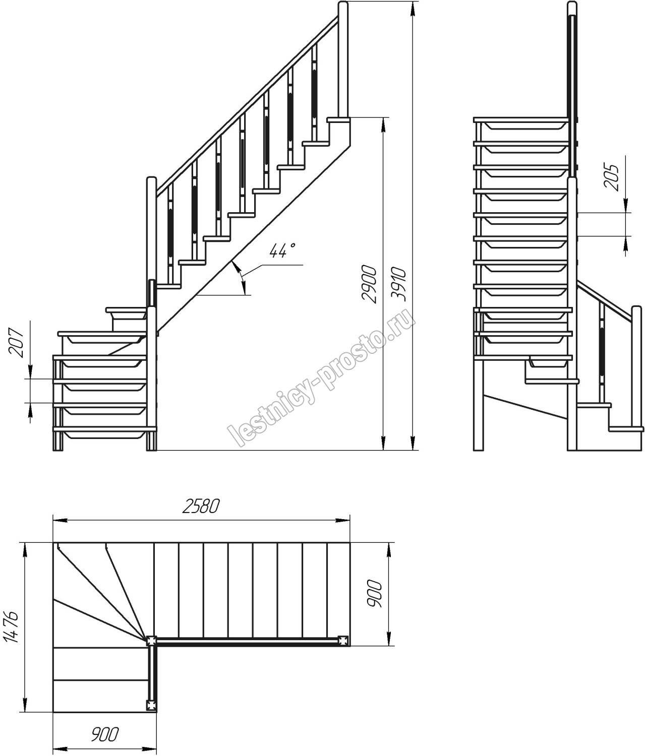 Деревянная межэтажная лестница ЛЕС-09 2900 проем 2580-900, Лиственница