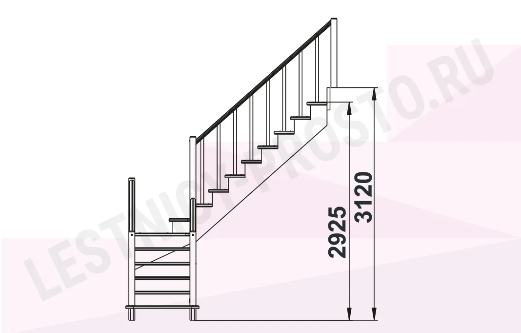 Высота лестницы 2925 - 3120 мм