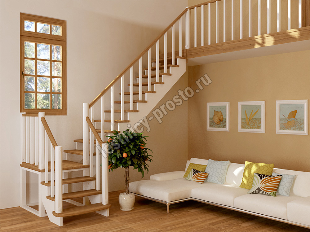 Ступени и поручень лестницы изготовлены из бука, остальные элементы из сосны.