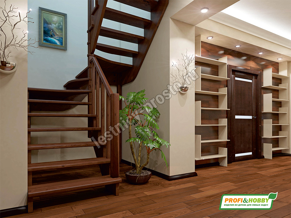 Ступени и поручень лестницы изготовлены из бука, остальные элементы из сосны.