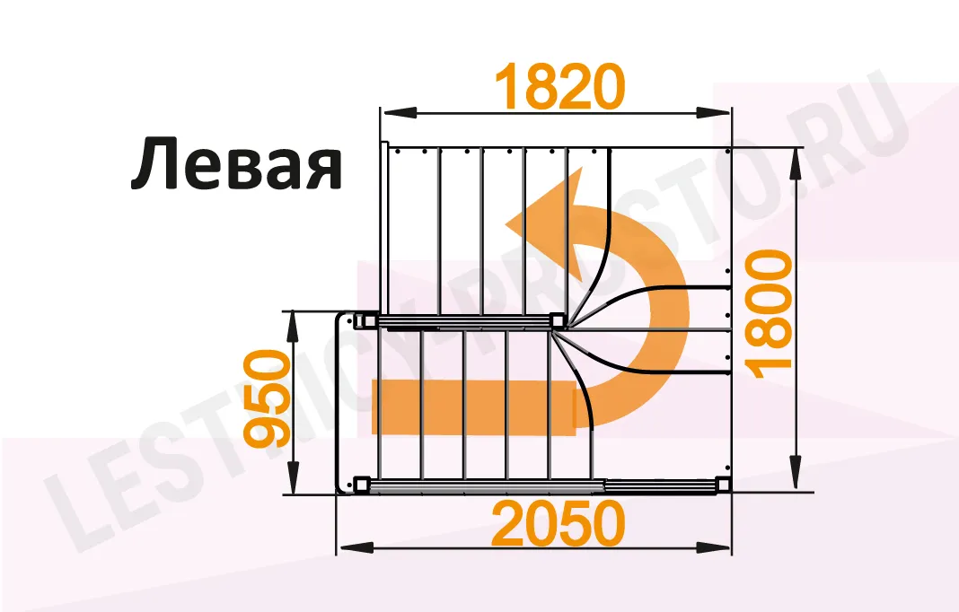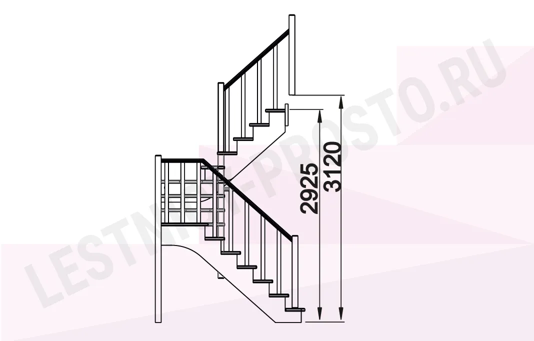 Ограждение по обеим сторонам (снизу до поворотной площадки)