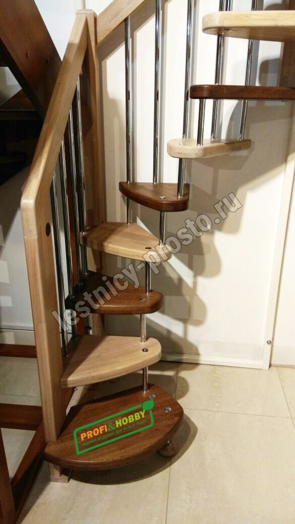 Стильная сверхмалогабаритная лесенка выручит в таких помещениях, где установка других лестниц проблематична из-за нехватки пространства. Базовый комплект включает в себя деревянные элементы лестницы и ограждения без какого-либо покрытия.