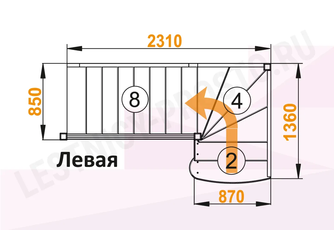 Схема лестницы ЛС-07М/5 с поворотом налево