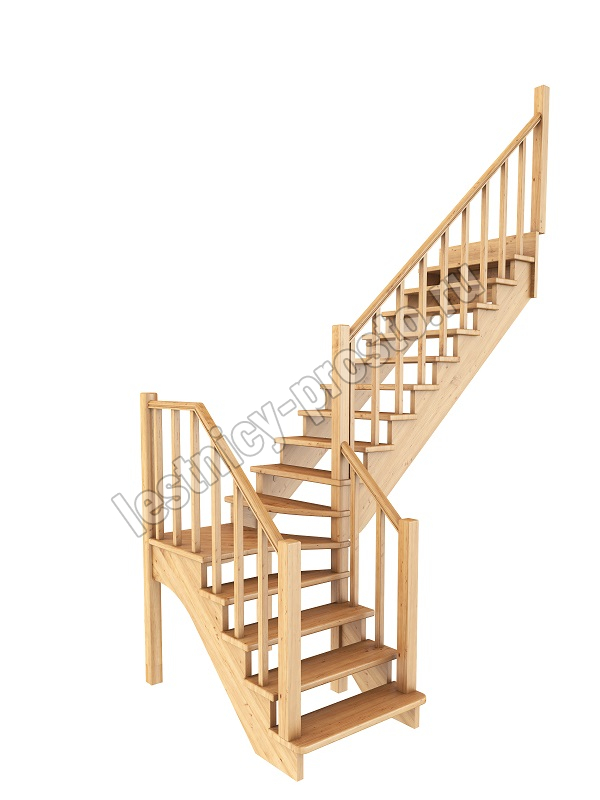 Базовый комплект включает в себя деревянные элементы лестницы и ограждения без какого-либо покрытия.
