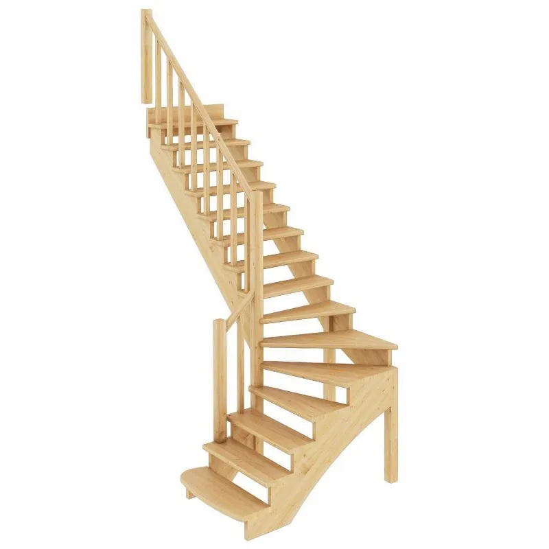Ступени и поручень лестницы изготовлены из ясеня, остальные элементы из сосны.