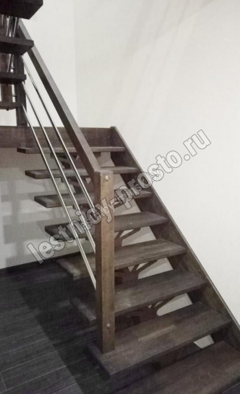 В комплекте: столбы и профильный поручень из бука без покрытия, комплект из 3 стальных ригелей (окрашены в цвет каркаса или хром по желанию) диаметром 12 мм. Ограждение начинается с пятой ступени.<br>