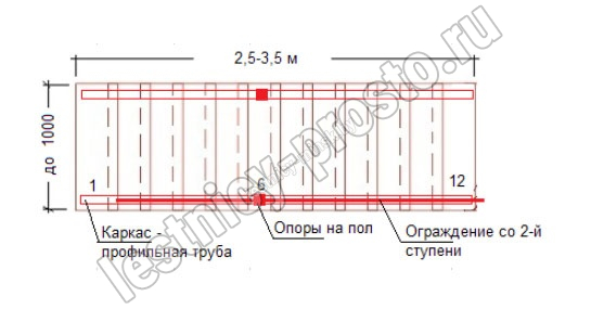 Комплект ограждений подходит для прямой лестницы на металлокаркасе PROSTO DUE и PROSTO DOUBLE из 12 ступеней. <br>