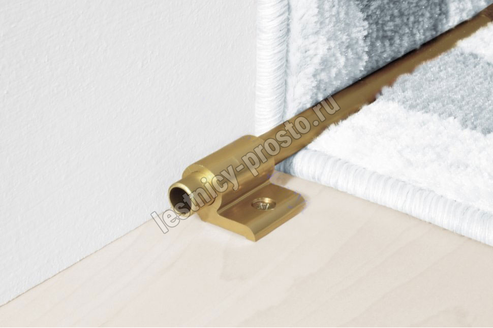 Ковродержатель комплектуется двумя держателями из алюминия цвета золото, а также алюминиевой трубкой цвета золото, длиной от 101 до 135 см.