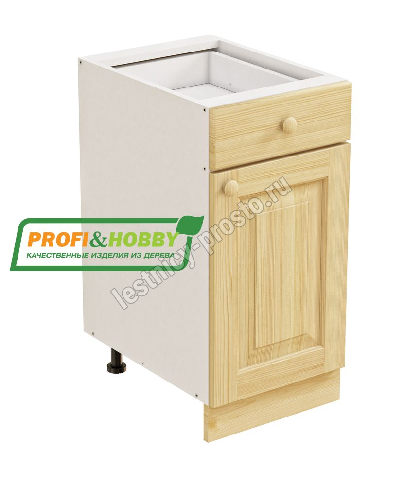Тумба 1 дверь 1 ящик 400х530х720 + фасад сосна бесцветный акриловый лак