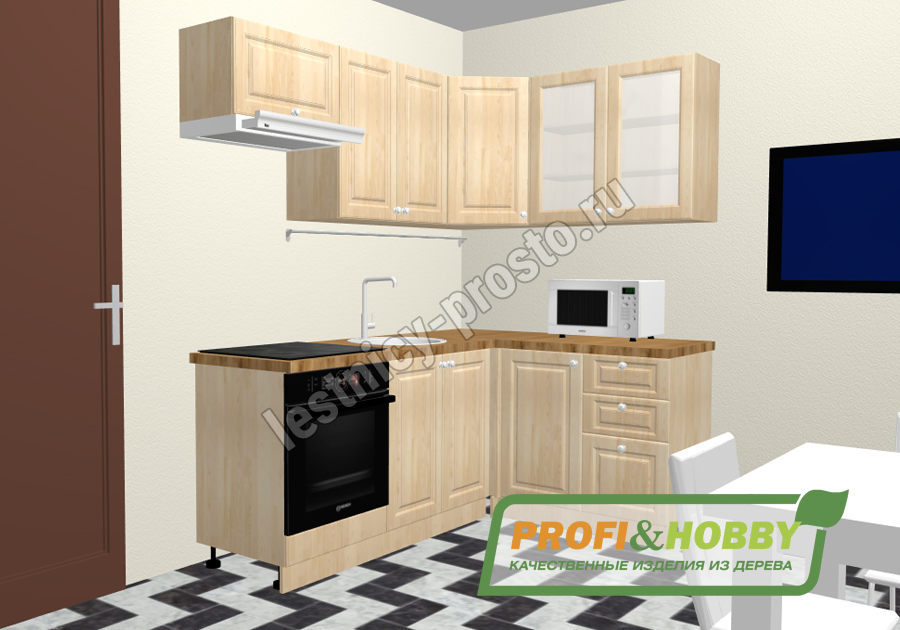 • Кухонные модули из сосны без тонировки (без отделки или прозрачный лак)