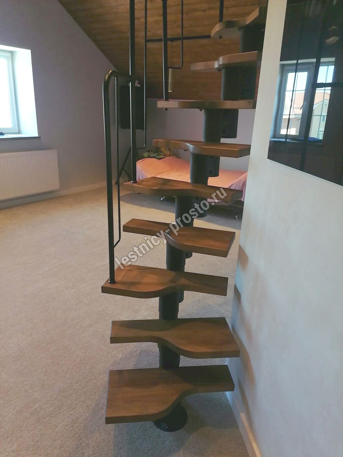 Лестница Prosto Urban Black гусиный шаг 700 мм, h198-288 см (11 ступеней), бук