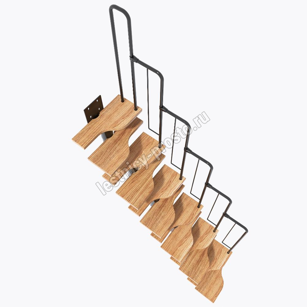 соответствует картинке, но вы не ограничены в его выборе. Лестницу можно приобрести и без ограждения, и с любым другим. Устанавливать на такую лестницу можно почти всё, начиная от классических деревянных балясин и заканчивая эксклюзивными коваными изделиями.