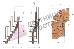| Лестница Prosto Urban Grey г-образная гусиный шаг 600 мм, h198-288 см (11 ступеней) |