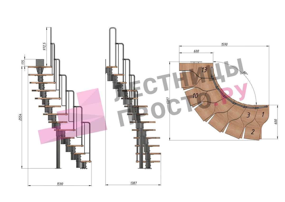 Высота лестницы 2340 - 3360 (13 ступеней) мм