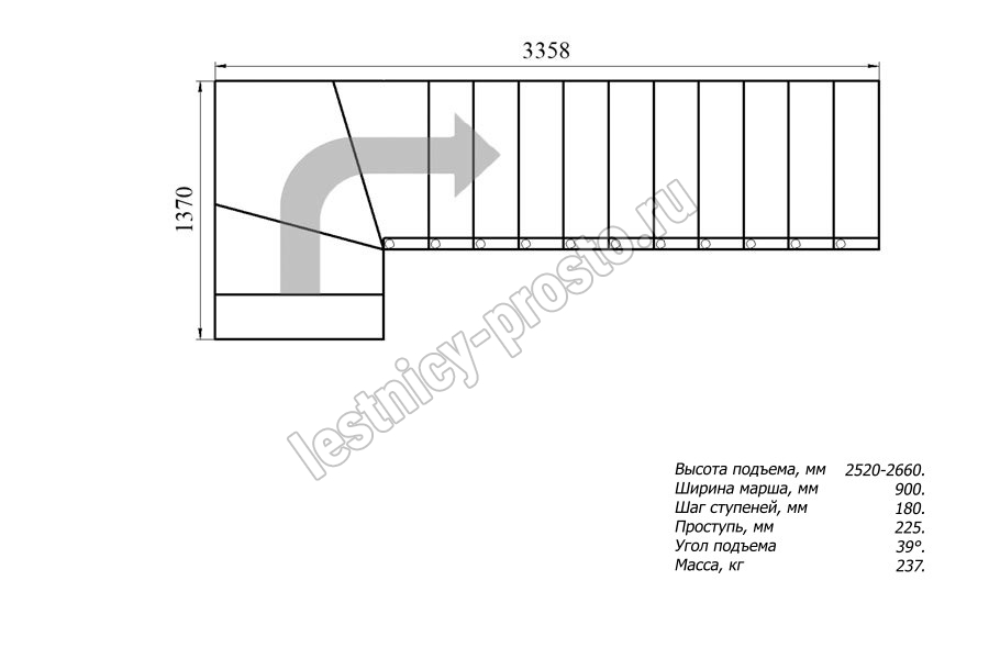 Модульная лестница Фаворит 180 2520-2660, Серый, Сосна, Нержавеющая сталь
