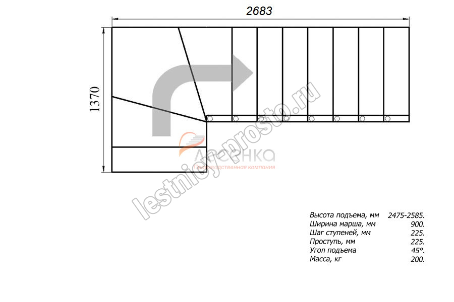 Модульная лестница Фаворит 225 2475-2585, Белый, Лиственница, Нержавеющая сталь