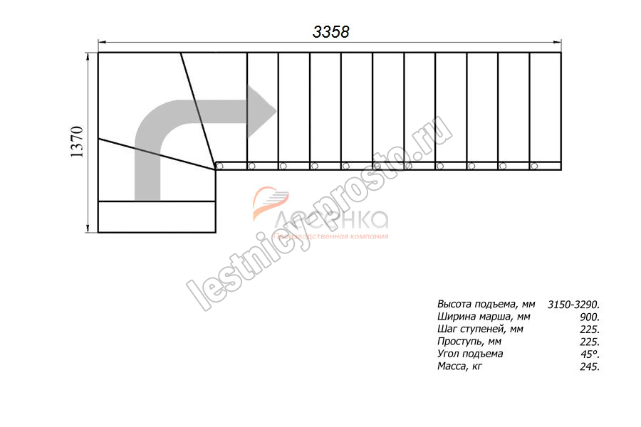 Высота лестницы 3150 - 3290 мм