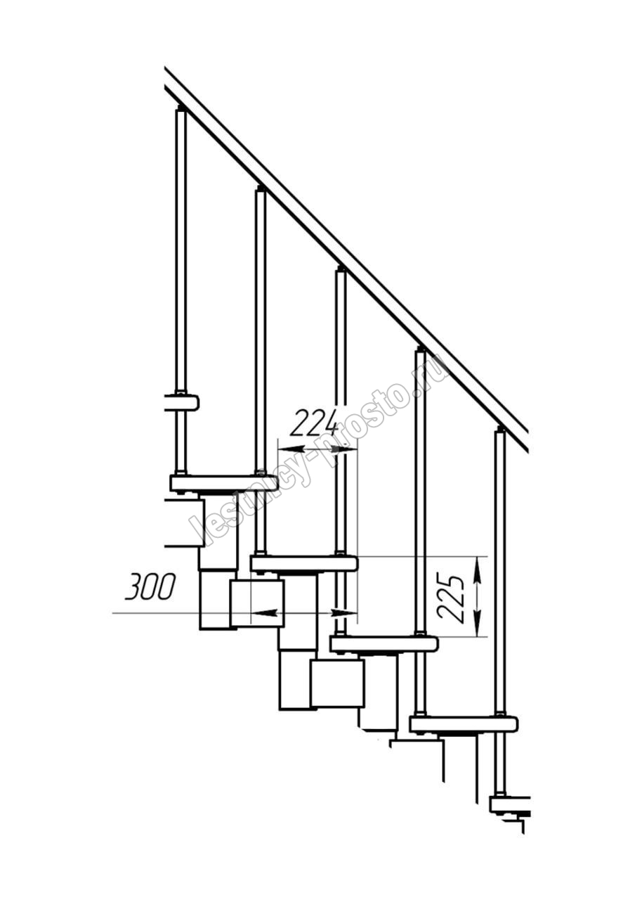 Модульная лестница Спринт 225 3150-3290, Черный, Бук, Нержавеющая сталь