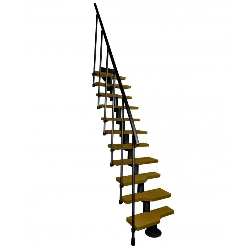 Модульная малогабаритная лестница Эксклюзив 2250-2475, Черный, Лиственница, Нержавеющая сталь