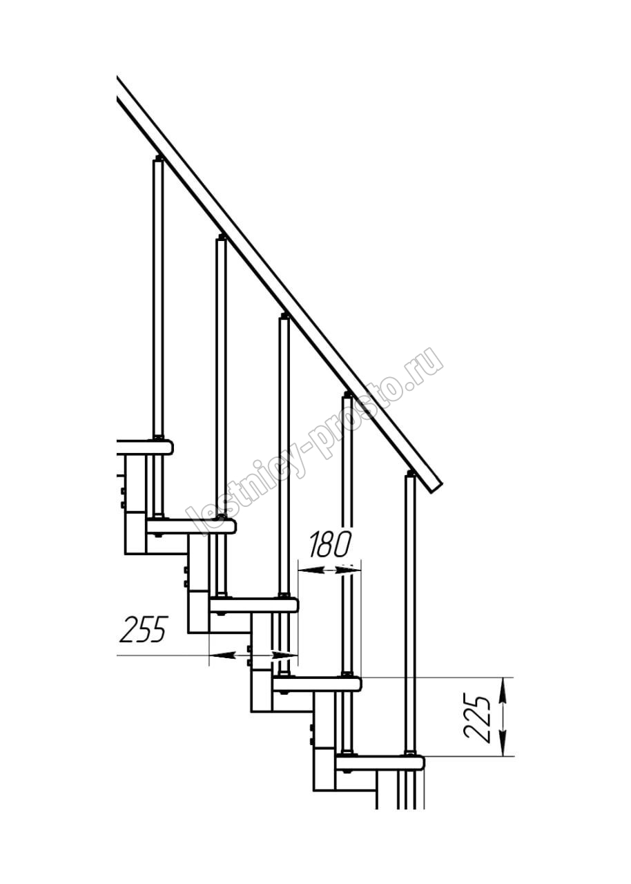Модульная малогабаритная лестница Линия 2025-2250, Черный, Сосна, Нержавеющая сталь