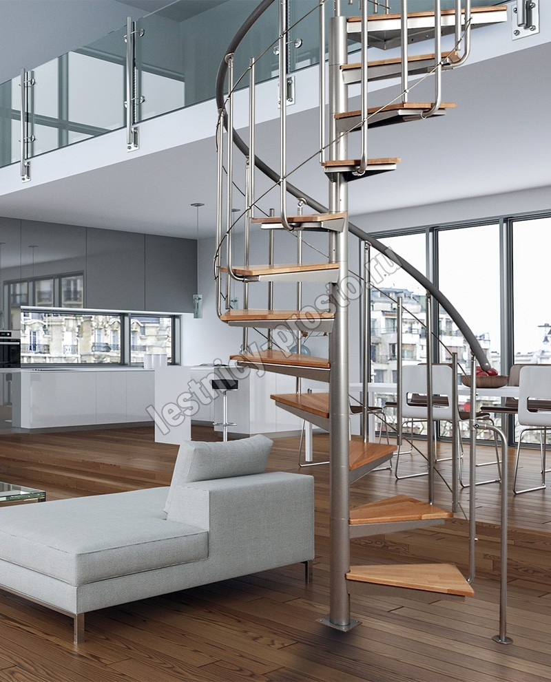 Винтовая лестница Solo vertical серебро, натуральный бук
