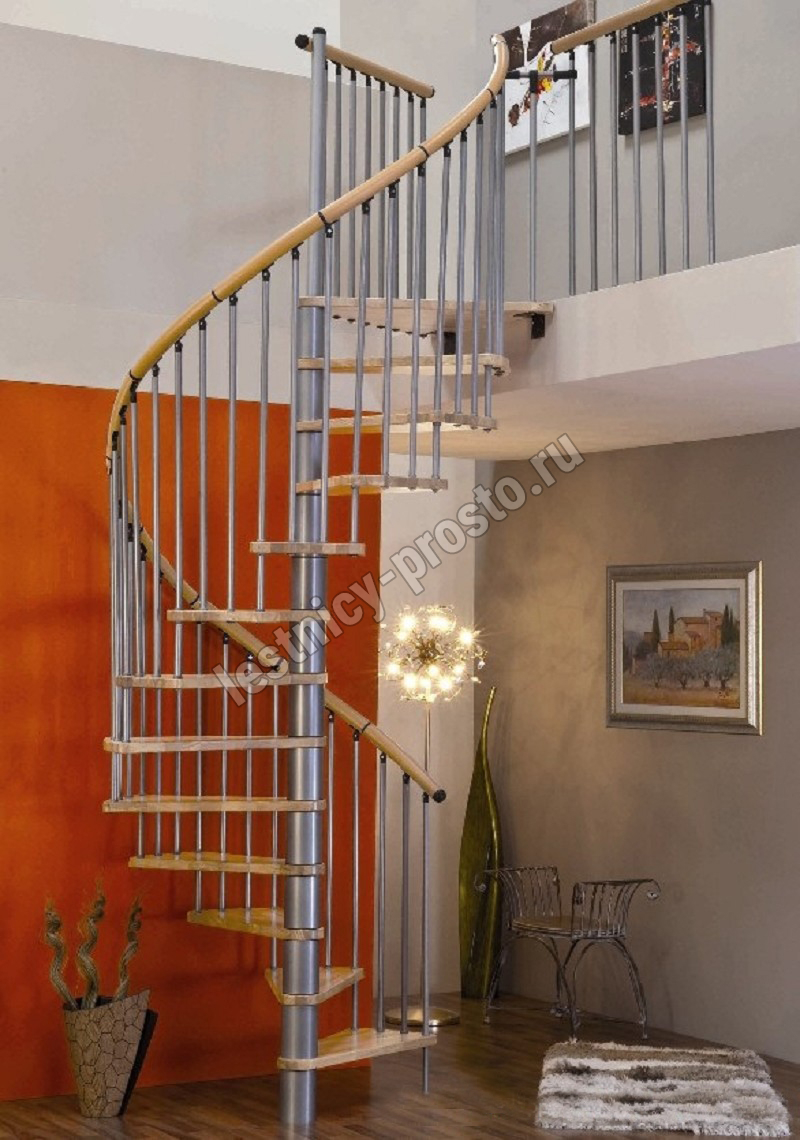 Винтовая лестница SPIRAL WOOD d160 см, серебро, лакированный дуб