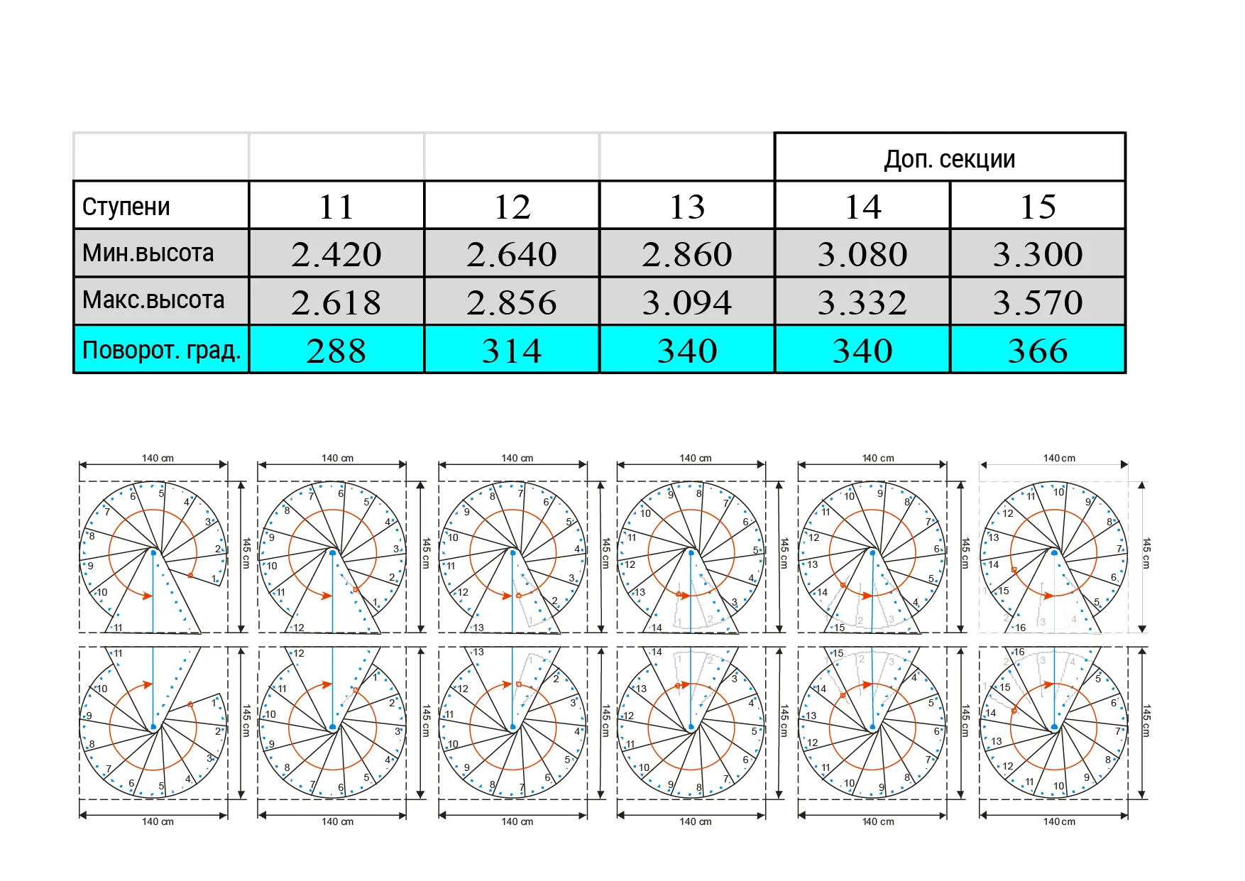 Благодаря возможности регулировать высоту шага с помощью пластиковых вставок (входят в базовый комплект), высоту лестницы можно варьировать в пределах от 2860 до 3090 мм.