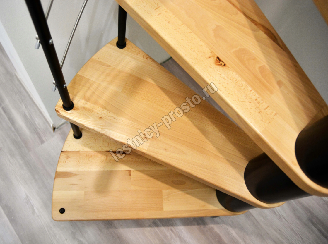 Cтупени и поручень  изготовлены из массива дуба и покрыты специальным лаком от компании Минка, который предотвращает царапины, сколы или стирание поверхности при интенсивном использовании лестницы.