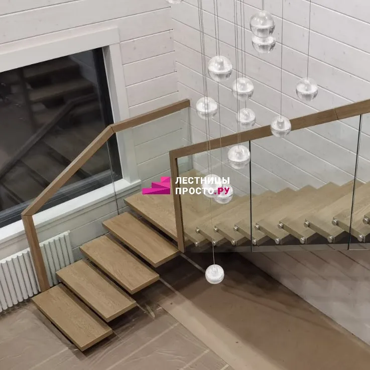 Лестница по индивидуальному проекту со стеклянным ограждением LP-2935