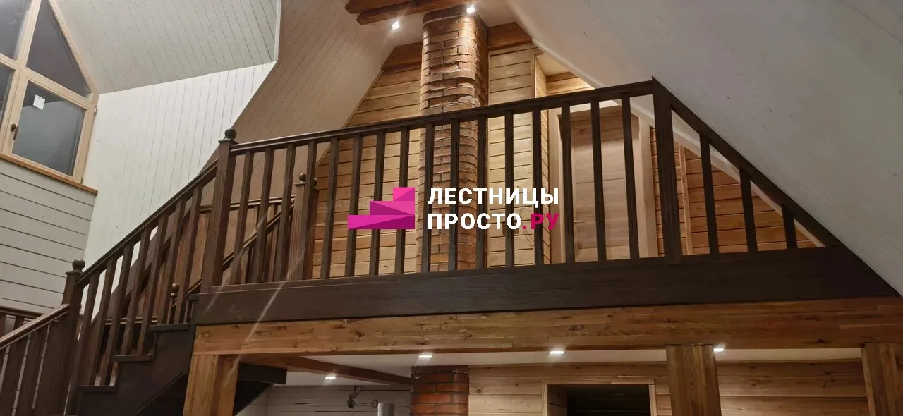 Лестница из сосны с поворотом и подступёнками для частного дома